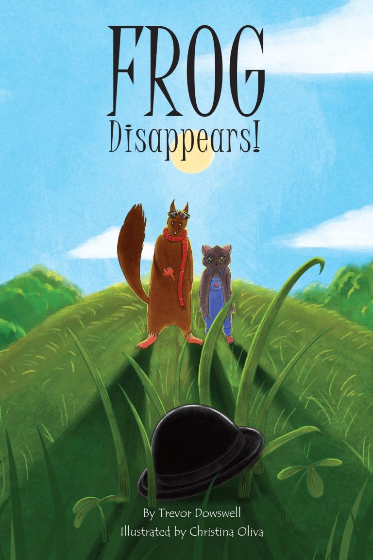 In this fourth book in the “Frog” series, “Frog: Disappears!”, Bat finds Frog’s hat in a meadow, but Frog is nowhere to be found! Thus Bat, with the help of Squirrel, begins her quest to find Frog, encountering some very unexpected creatures in the process.
